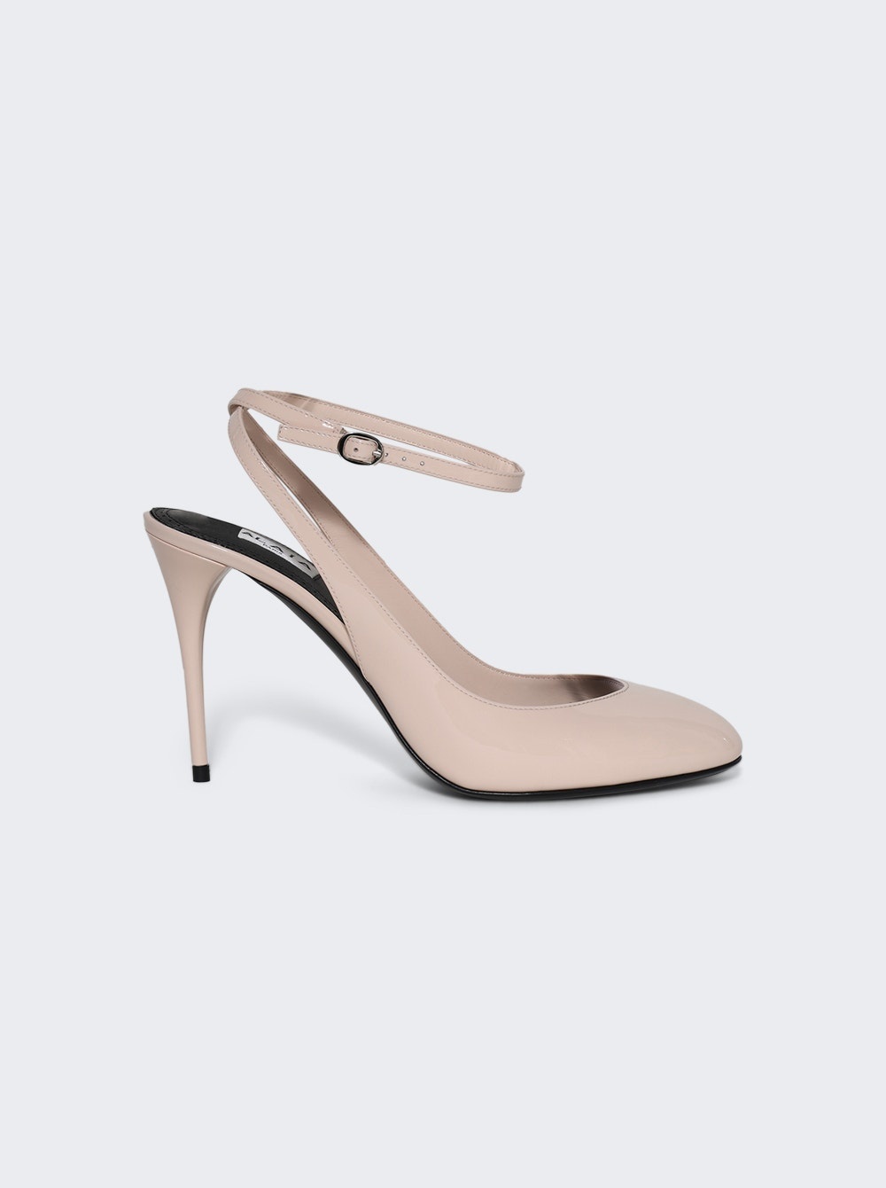 Details - Round pointy toes - Slingbacks with a feminine low vamp - 90 mm heel - Cross ankle straps - Patent calfskin leather - Care according to label - Material: 100% Lambskin - True to size. Listed in FR sizing. Brand Style: AA3E052CK168 Designer/Brand: ALAIA