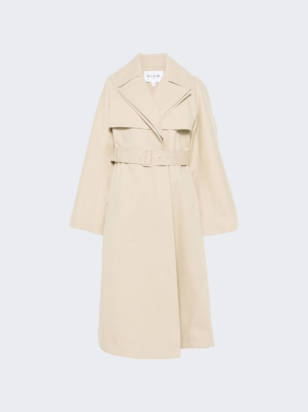 Details - Relaxed fit - Belted waist - Side welt pockets - A-line silhouette - Notch lapels - Single breasted front - Double collar - Care according to label - Material: Cotton - Model is 5'9"/175cm and is wearing a size FR36 Brand Style: AA9M03606T688 Designer/Brand: ALAIA
