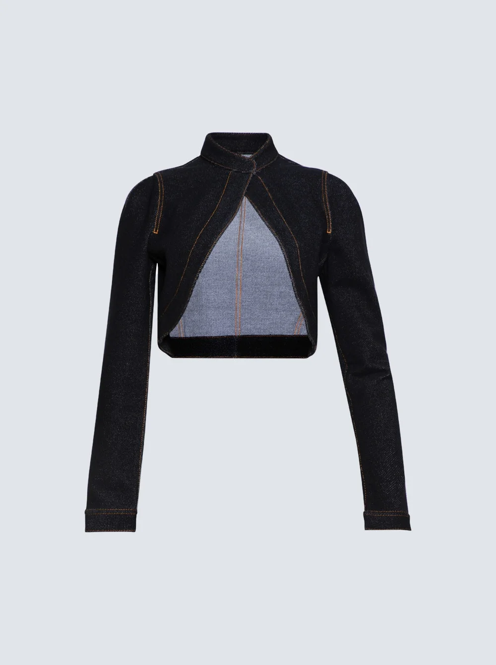 DENIM KNIT CROPPED CUT-OUT JACKET