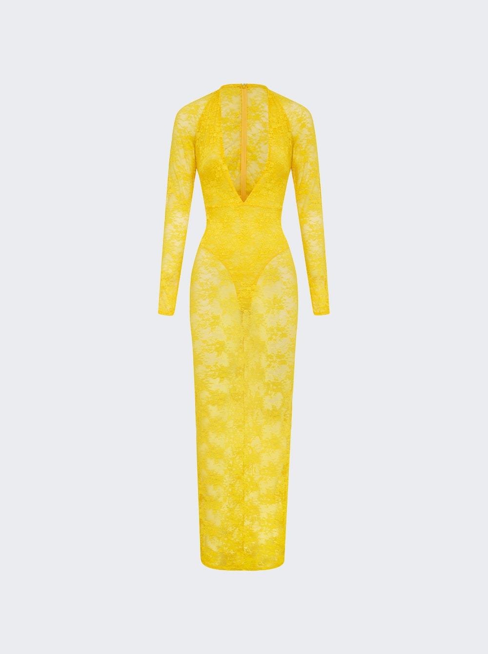Long Sleeve Halter Column In Stretch Lace Yellow