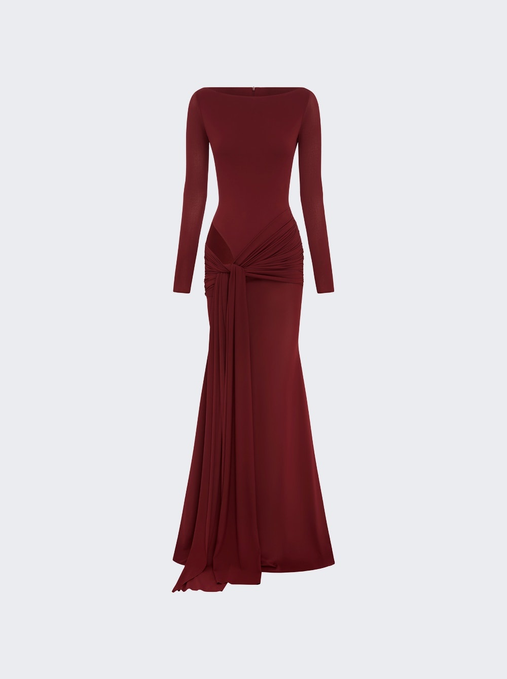 Details - Fitted fit - Maxi length - Long sleeves - Self knot tie - Concealed zip fastening - Semi sheer - Exposed cut out design - Care according to label - Material: 91% Polyester, 9% Elastane - Model is 5'9"/175cm and is wearing a size UK8 Brand Style: D1444RE25 Designer/Brand: ALEX PERRY