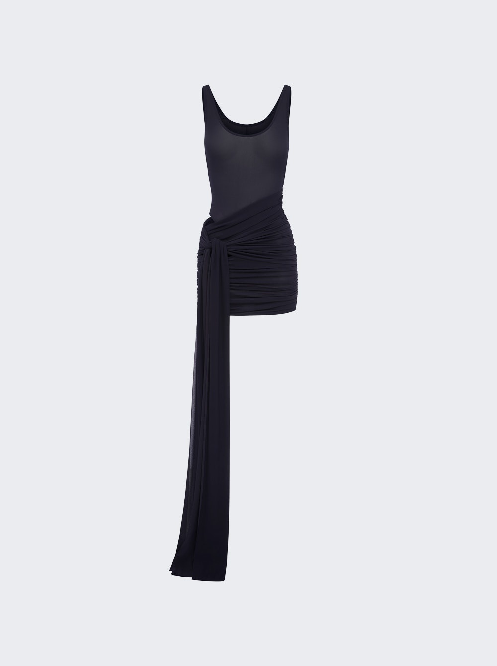 Details - Fitted silhouette - Mini length - Scoop neck - Cut out design - Sheer construction - Floor length draped - Self tie knot - Concealed zip fastening - Care according to label - Material: 91% Polyester, 95% Elastane - Model is 5'9"/175cm and is wearing a size UK8 Brand Style: D1443RE25 Designer/Brand: ALEX PERRY