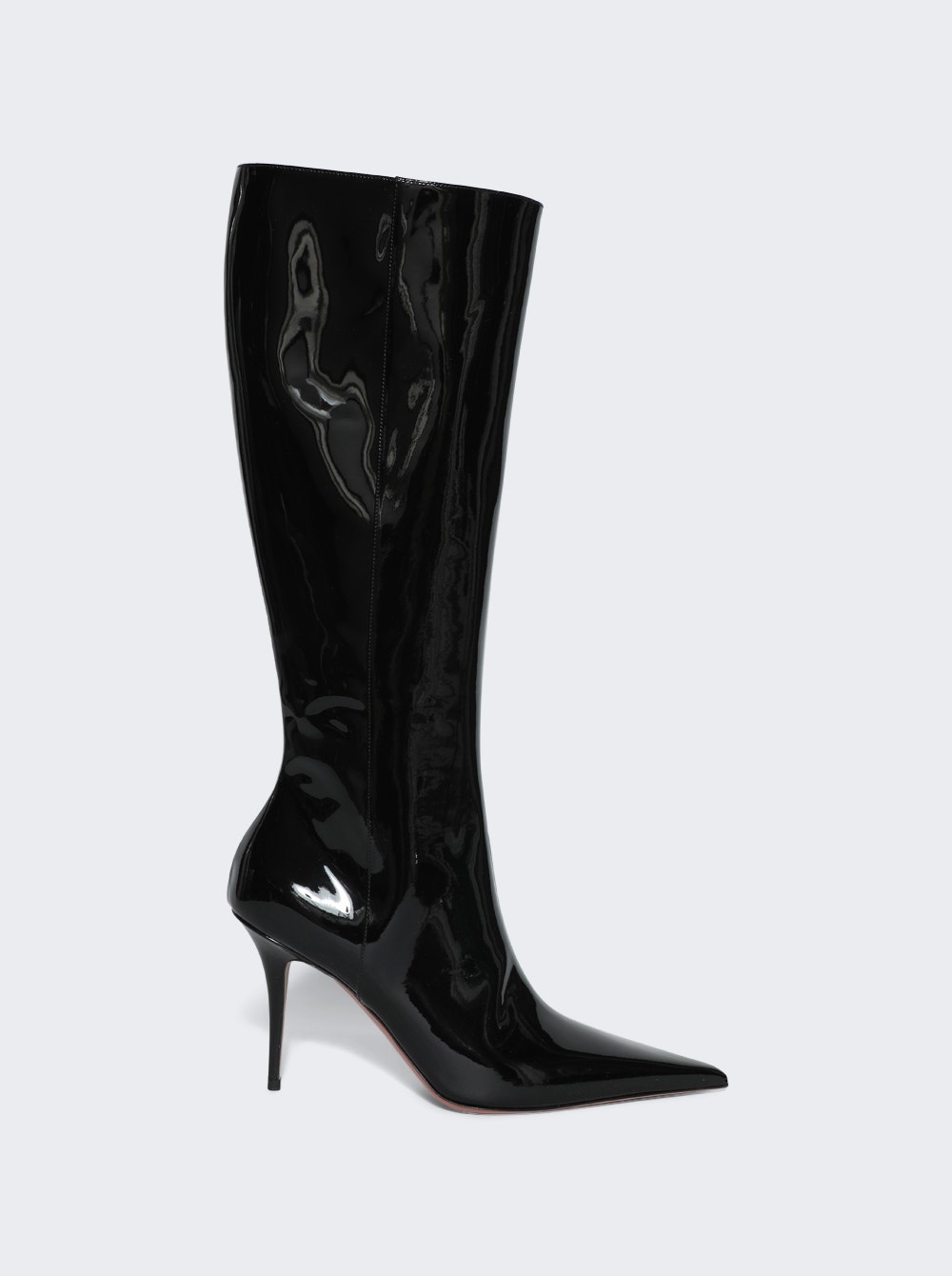 Details - High heel, below-the-knee boot - Slim stiletto heel - Pointed toe design - Heel height: 90mm - Fits slightly tight around the leg - Patent leather - Sole: Leather and TPU - Listed in IT sizing. Fits slightly small, we recommend selecting a half size up. Brand Style: BARBARA BOOT 90MM Designer/Brand: AMINA MUADDI