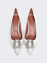 Details - Pumps with crystal ornament - Pointed toe - Slip-on - Heel height: 90mm Dimensions: Listed in IT sizing, fits true to size Composition: Upper: leather; Lining: leather; Sole: leather, synthetic Care: Care according to label Brand Style: CAMELIA PUMP 90 PATENT Designer/Brand: AMINA MUADDI