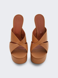 Details - High heel slip-on platform sandals - Rounded toe - Heel height: 155mm/6.1in - Platform height: 50mm/2in - Material: Nappa leather - Listed in EU sizing, fits true to size Brand Style: 13S361161SAL Designer/Brand: AMINA MUADDI