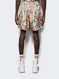Details - Elastic waistband - Drawcord - Side seam pockets - Relaxed fit - Graphic print Dimensions: Model is 6'1"/185cm and is wearing a size M Composition: 100% Silk Care: Care according to label Brand Style: AMSHSH1006 Designer/Brand: AMIRI
