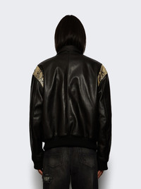 Details - Zip-up leather bomber jacket - Ribbed knit cuffs and hem - Snake-printed leather embellishment - Stud detailing throughout - Material: 100% Cow Leather Vendor Color Code: Brand Style: AMOUJA1027 Designer/Brand: AMIRI
