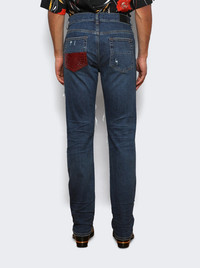 Thrasher Slim-Fit Distressed Croc-Effect Leather-Trimmed Panelled Jeans Blue
