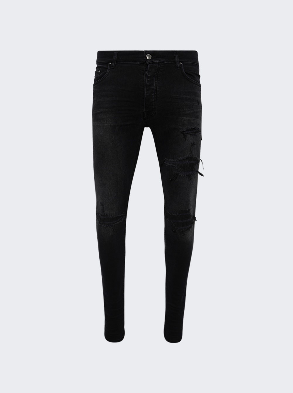 Details - Skinny leg - Distressed detailing - Five-pocket design - Zip fly , button fastening - Topstitching Dimensions: Model is 6'1"/185cm and is wearing a size US33 Composition: 100% Cotton Care: Care according to label Brand Style: AMDNSY1049 Designer/Brand: AMIRI
