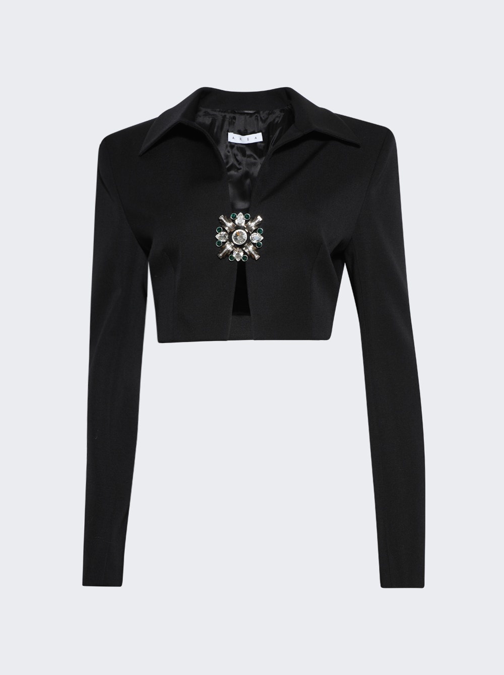 Details - Wool suiting cropped blazer - Crystal brooch embellishment front button closure - Model is 5'9"/175cm and is wearing a size US4 - 100% Virgin Wool Brand Style: RS25AWTA0019FA01 Designer/Brand: AREA