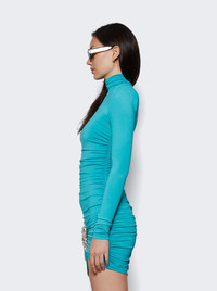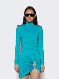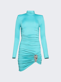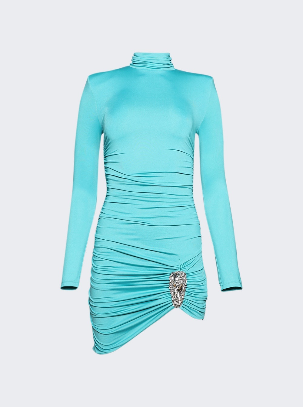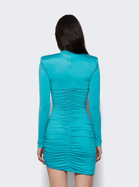 Crystal Cluster Draped Long Sleeve Mini Dress Teal