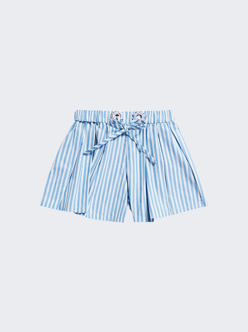 Details - Mini length - Poplin pleated shorts - Elasticated waistband - Crystal grommet embellished - Drawstring closure - Care according to label - Material: - Cotton, 50% Polyester Size Information: Vendor Color Code: Brand Style: PF25AWSO0028FA01 Designer/Brand: AREA