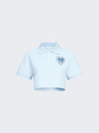 Crystal Heart Cut Out Cropped Polo Baby Blue