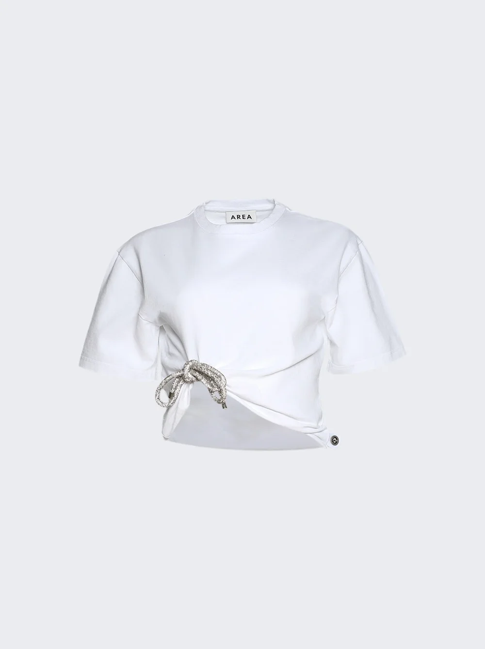 Details - Regular fit - Crewneck - Short sleeves - Rhinestone bow detail at side of hem - Pullover style - Care according to label - Material: 100% Cotton Vendor Color Code: Brand Style: RS26AWTS0052FA 01 Designer/Brand: AREA