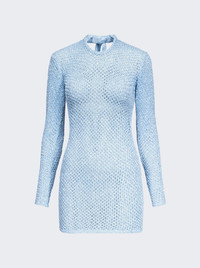 Sequin Crochet Long Sleeve Mini Dress Light Blue