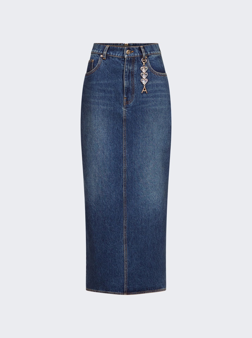 Zip Slit Midi Skirt Medium Wash