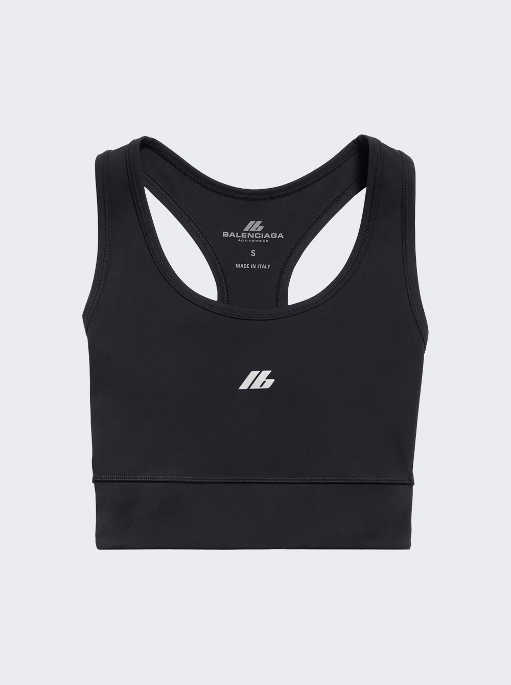 Details - Tone-on-tone overlock stitching - Racer back - Stretch finish - Activewear logo printed at front Dimensions: Model is 5'9"/175cm and is wearing a size S Composition: 58% Polyamide, 42% Elastane Care: Care according to label Brand Style: 793282 4E2B9 Designer/Brand: BALENCIAGA