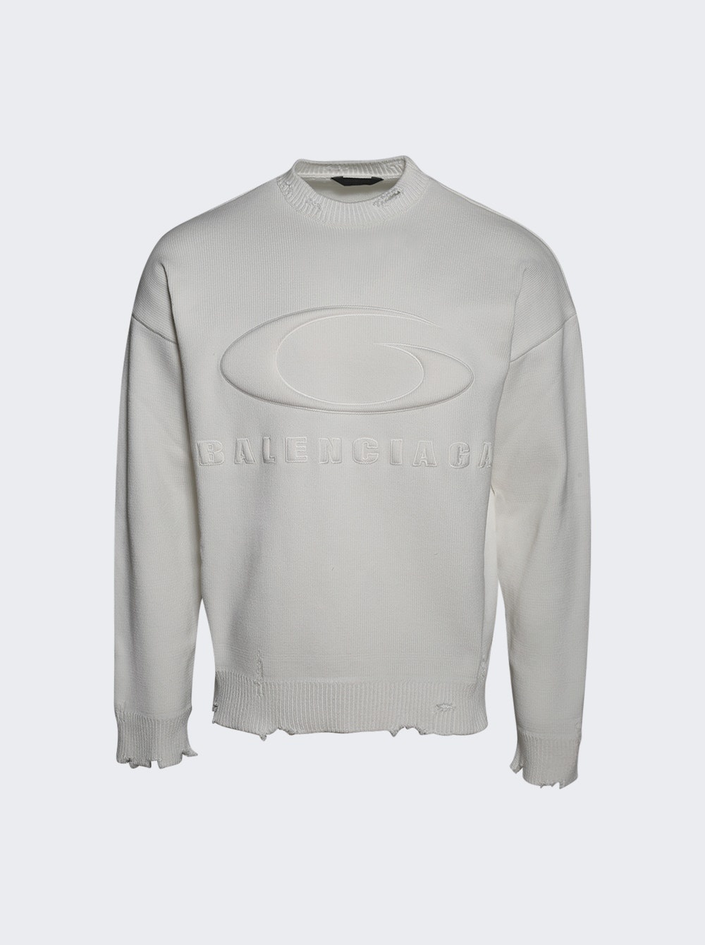 Details - Loose fit - Crewneck - Distressed design - Embossed logo - Dropped shoulder - Long sleeves - Straight hem - Care according to label - Model is 6'1"/185cm and is wearing a size 2 Brand Style: 809099 T3338 Designer/Brand: BALENCIAGA
