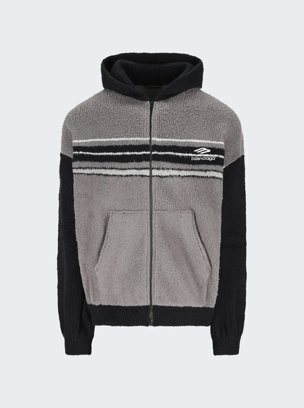 Fluffy Zip-up Hoodie Grey And Multicolor