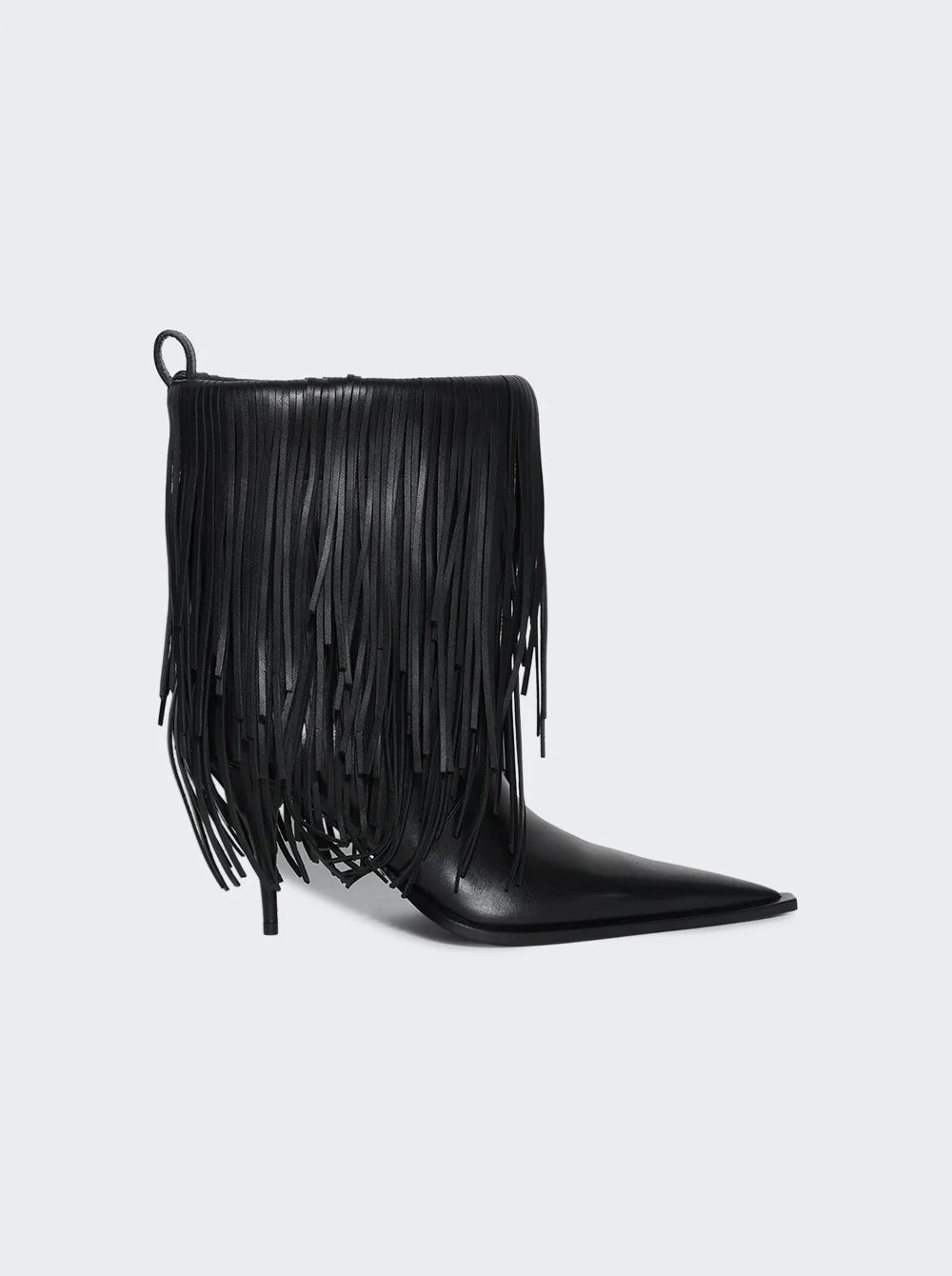 Details - Pointed toe - Fringe detailing - 90mm arch - Knife heel - Loop on the back - Balenciaga logo debossed on the back - Care according to label - Material: Upper Calfskin ; Sole: Calfskin Vendor Color Code: Brand Style: 855350 WBDO0 Designer/Brand: BALENCIAGA