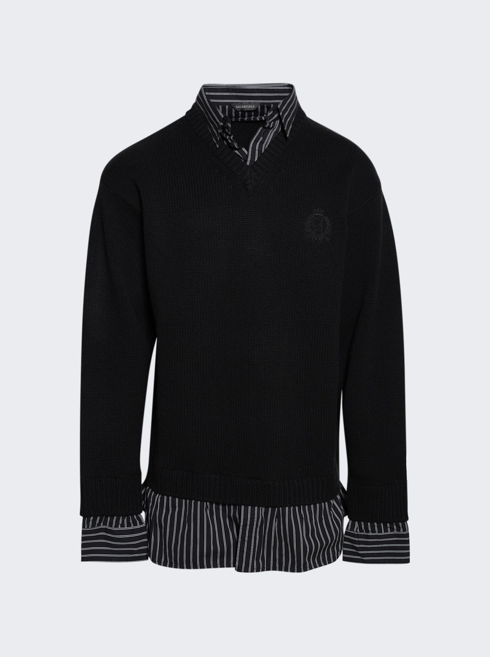 Details - Regular fit - Long sleeves - Embroidered logo - Layered construction - Ribbed cuffs - Care according to label - Material: 100% Cotton, 100% Wool - Model is 6'1"/185cm and is wearing a size M Brand Style: 809508 T1712 Designer/Brand: BALENCIAGA