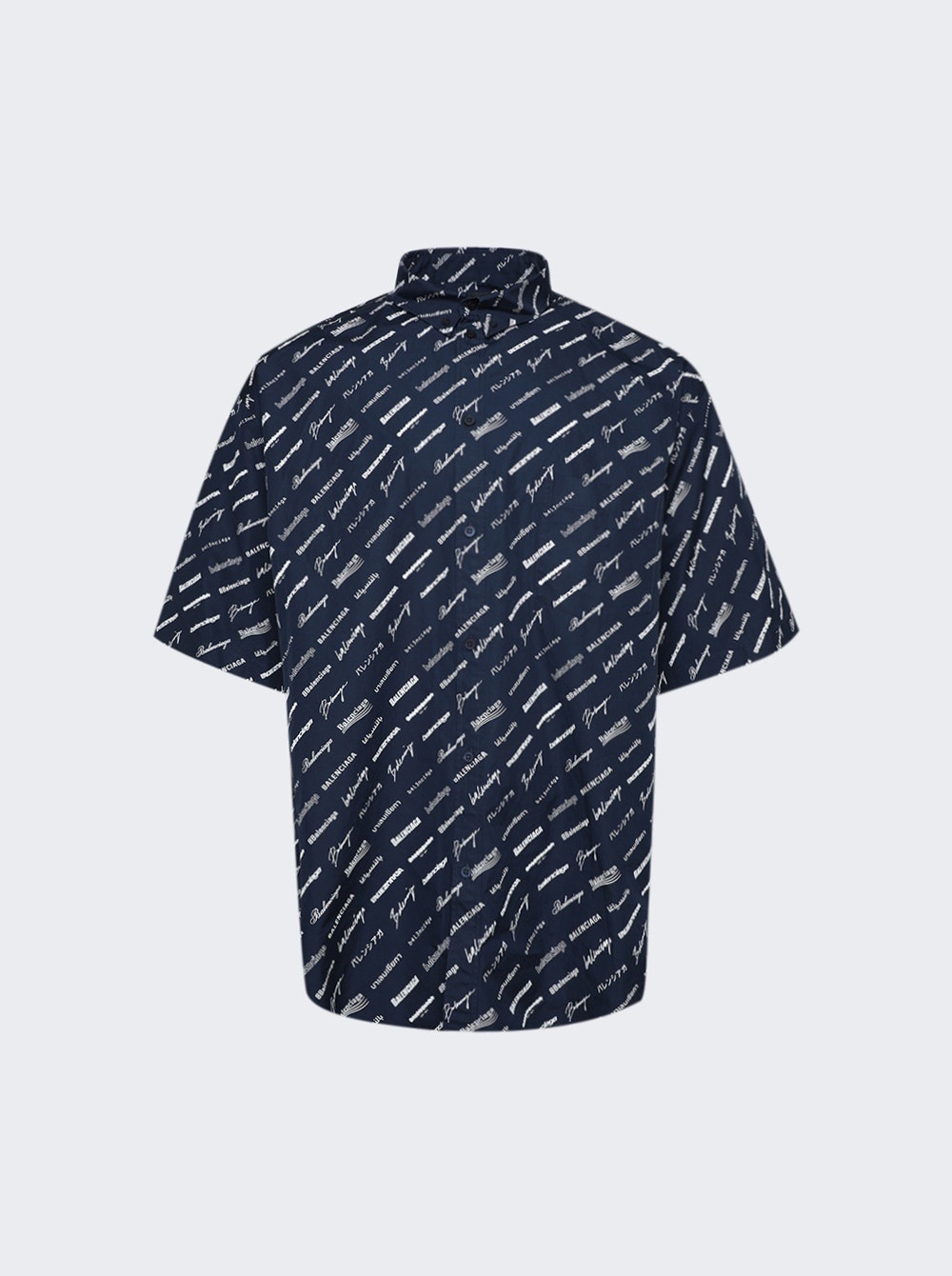 Details - Pointed collar - Button up fastening - Logo detail throughout - Straight hem - Topstitching Dimensions: Model is 6'1"/185cm and is wearing a size FR40 Composition: Fabric blend Care: Care according to label Brand Style: 681702 TNLL1 Designer/Brand: BALENCIAGA
