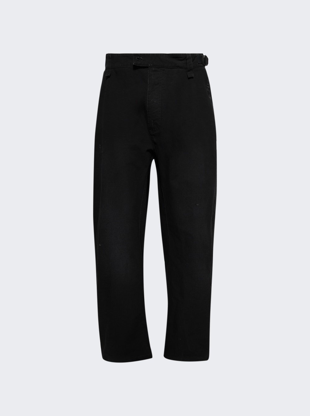 Wide-Leg Distressed Cotton Cargo Trousers Black