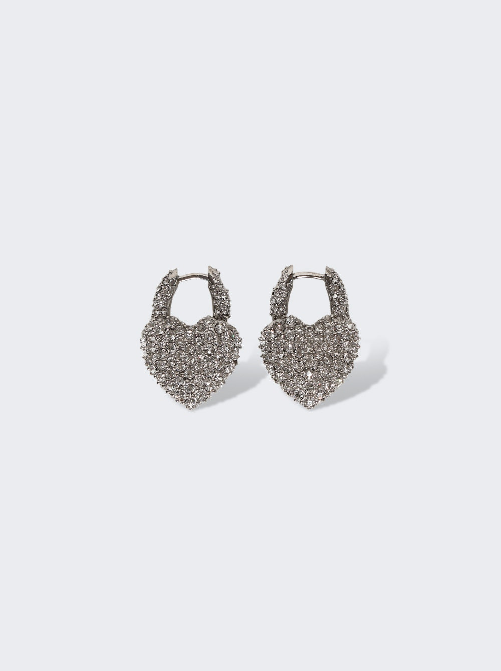 Details - Heart shape silhouette - Hinge closure - Inlaid rhinestones - Silver-toned brass - Set of two - Nickel-free, lead-free, and hypoallergenic - Care: To keep the luster of your piece avoid contact with perfumes or lotions. Remove before showering, swimming, or exercise. After each use wipe your piece with a jewelry cloth or cotton ball. - Material: aluminum, glass Vendor Color Code: Brand Style: 811879 TZ63S Designer/Brand: BALENCIAGA