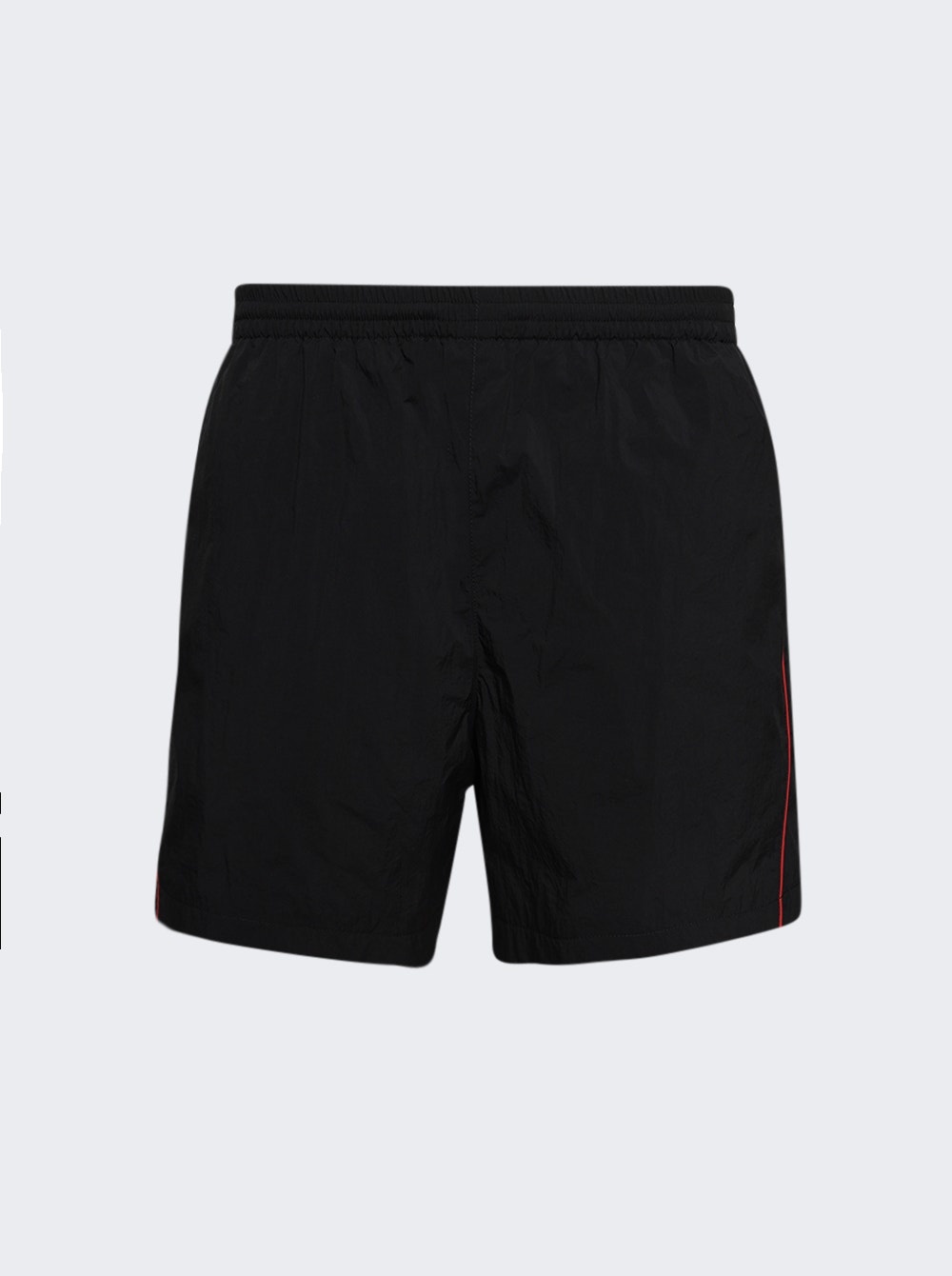 Details - Short length - Elasticated waistband - Red detail on legs - Embroidered Balenciaga logo along sides - Two side pockets - Care according to label - Material: 100% Polyamide Size Information: Vendor Color Code: Brand Style: 814568 TRO32 Designer/Brand: BALENCIAGA