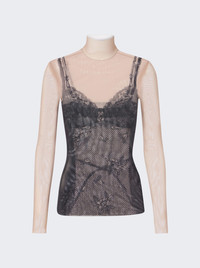 Women's Trompe L'œil Lingerie Top in Black/light Beige