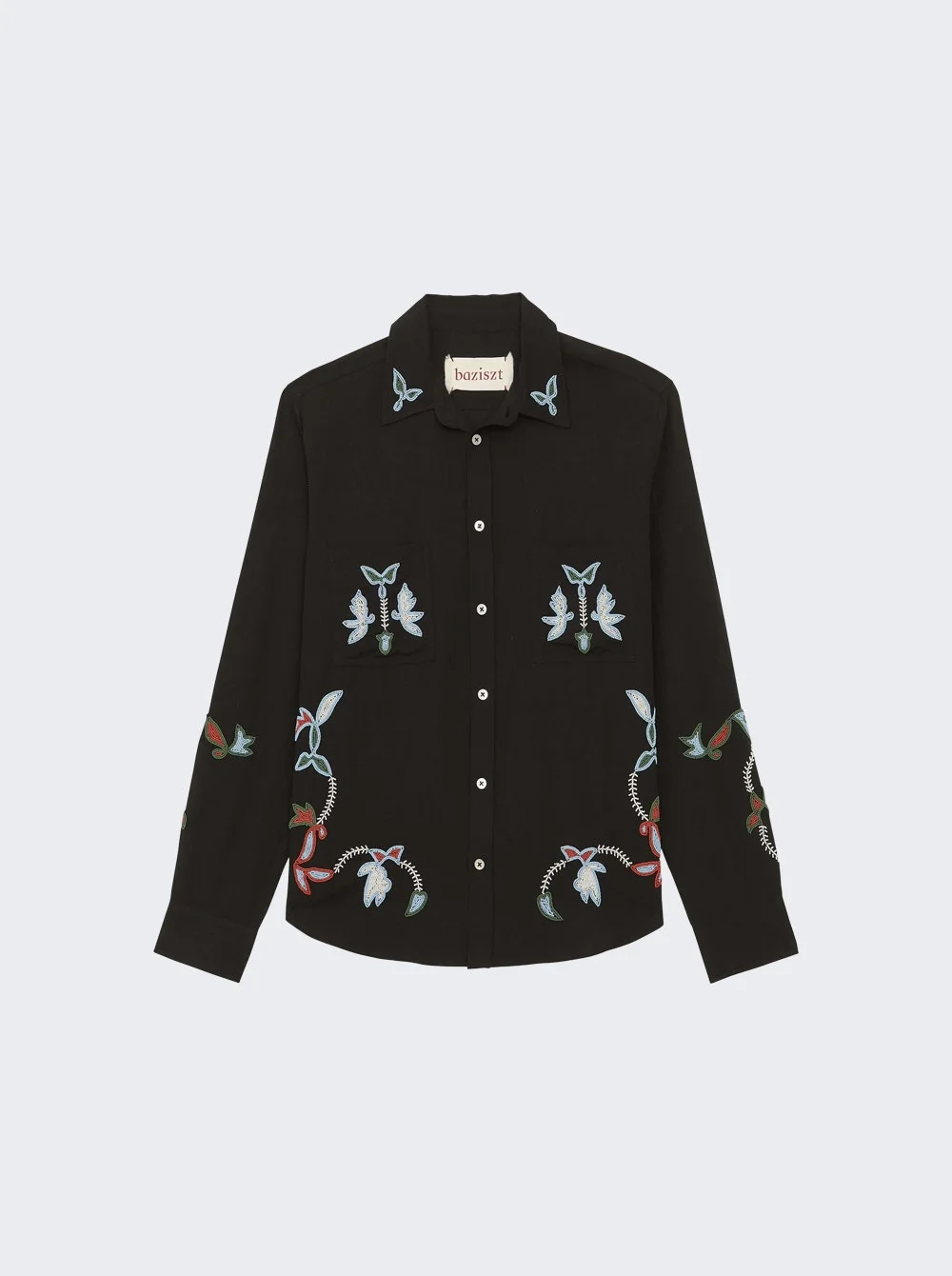 Details - Regular fit - Long sleeves - Button closure - Embroidered floral motif - Chest patch pockets - Beaded embellishment - Curved hem - Care according to label - Material: 100% Cotton Vendor Color Code: Brand Style: BZPS26SR01102 Designer/Brand: BAZISZT