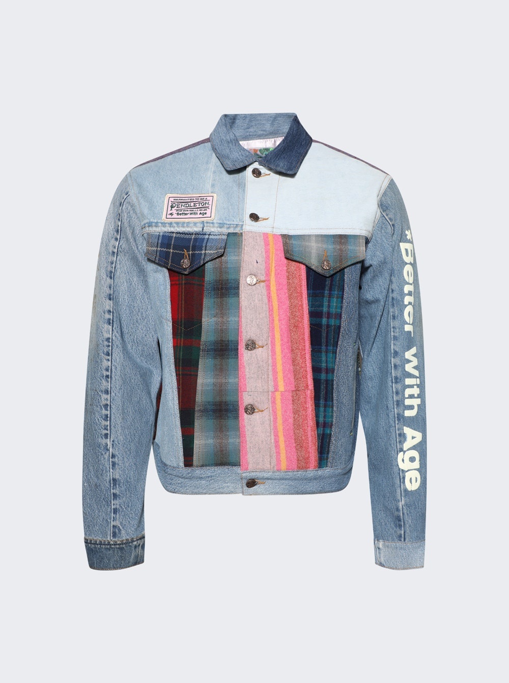 Details - Constructed in the USA using denim fabric sourced from vintage Levi's and individually sourced vintage Pendleton® Flannel shirts + scraps and seconds from the Pendleton® Factory. - All pieces are one-of-a-kind. Product received may vary greatly from photo. - This garment may display stains, blemishes, wear, or general signs of age. These imperfections are representative of the brand's commitment to sustainability. - Model is 6'1"/185cm and is wearing a size M. Brand Style: BXPDJALB Designer/Brand: BETTER WITH AGE