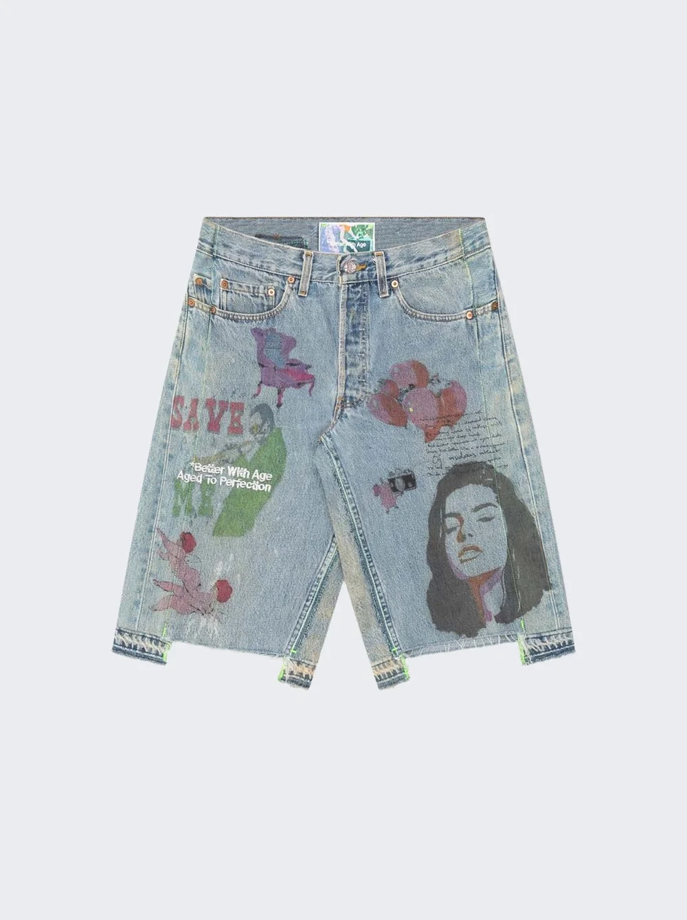 Details - Each product is one-of-one, and may differ greatly from the photo. - Constructed using hand-picked vintage denim - Cut-out, raw hem - Screen printed detailing - This garment may display stains, blemishes, wear, or general signs of age. These imperfections are representative of the brand's commitment to sustainability. - Material: 100% Cotton Vendor Color Code: Brand Style: SS26DSHAR Designer/Brand: BETTER WITH AGE
