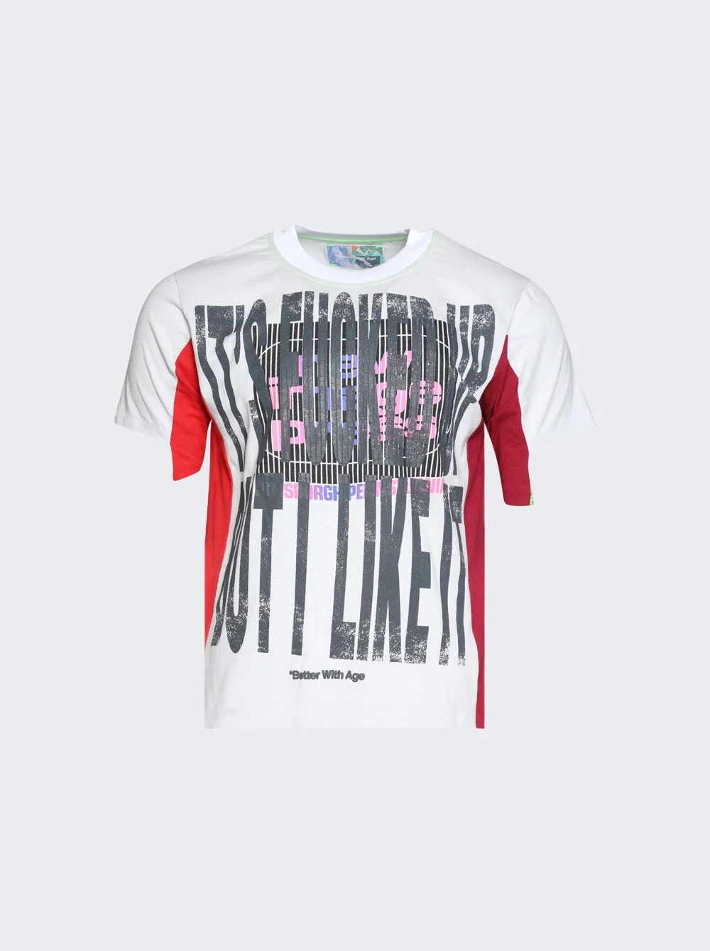 Details - Constructed using randomly assorted vintage t-shirts, pieced together. - Screen printing on the front and back - Buyer will receive a random color vintage t-shirt. All pieces are one-of-a-kind, and the product received may vary greatly from the photo. - This garment may display stains, blemishes, wear, or general signs of age. These imperfections are representative of the brand's commitment to sustainability. - Material: 100% Cotton Vendor Color Code: Brand Style: SS263PTSPOI Designer/Brand: BETTER WITH AGE