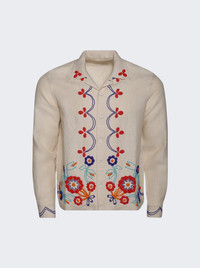 Details - Heavyweight linen collared shirt - Front button closure - Embroidered and beaded detailing throughout - Model is 6'1"/185cm and is wearing a size M Brand Style: MRS25SH030 Designer/Brand: BODE