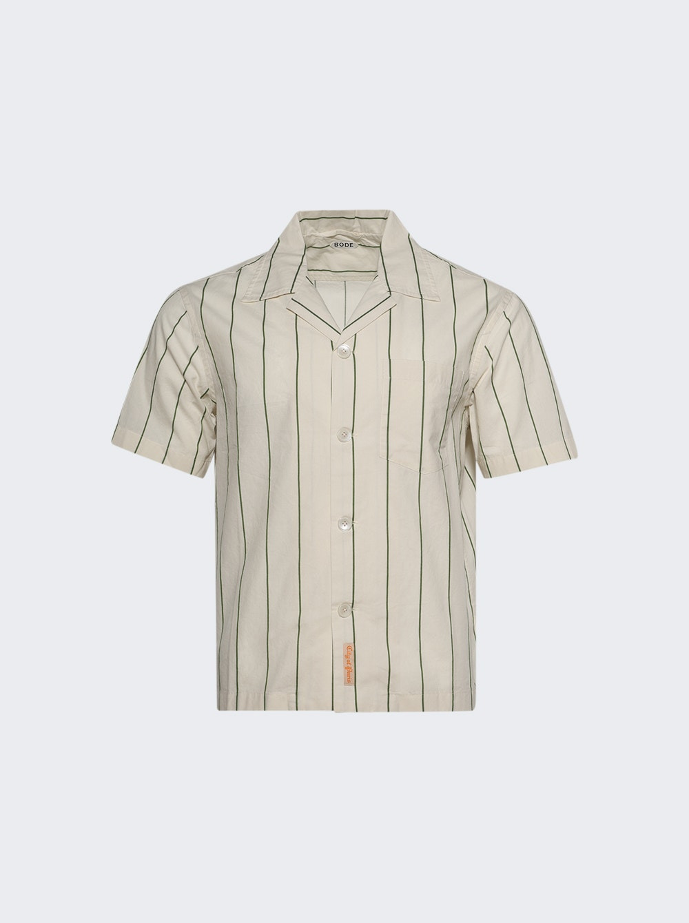 Details - Inspired by fabric from a shirting sample book, c.1930s - Antique "City of Paris" label at hem - Short sleeve button down shirt - Notched, camp collar - Material: 100% Cotton Size Information: Vendor Color Code: Brand Style: MRF25SH003 Designer/Brand: BODE