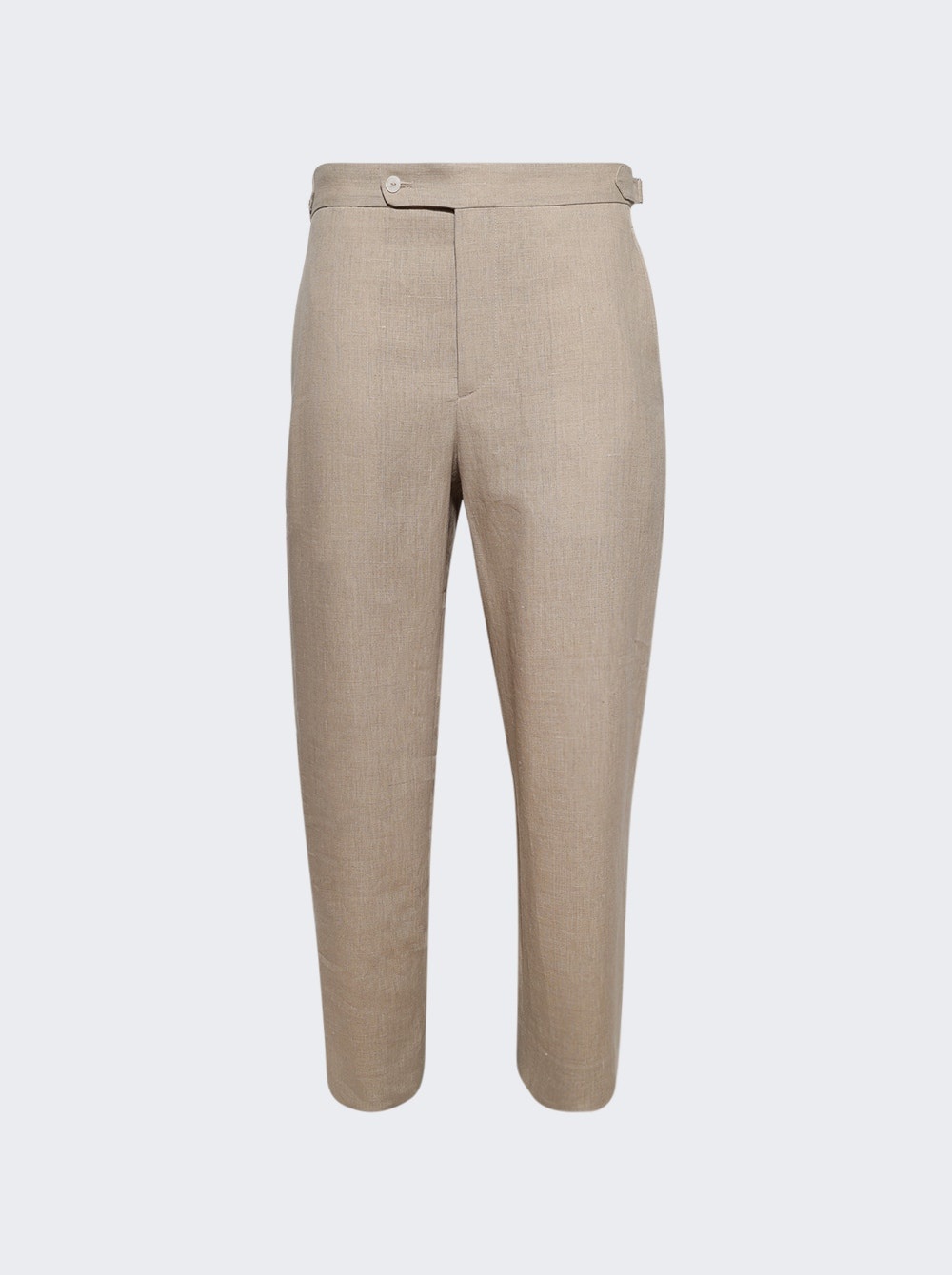 Details - Regular fit - Straight leg - Zip and button closure - Side-buckle waist adjusters for ideal fit - Two welt pockets - Care according to label - Material: 100% Linen - Model is 6'1"/185cm and is wearing a size US32 Brand Style: MRS25BT072 Designer/Brand: BODE