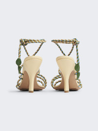 Details - Leather lace-up sandal with multicolor coaxial laces - Lacquered embellishments - Material: Lambskin - Rubber-injected leather outsole - Heel: 9 cm | 3.5” Brand Style: 816473 VBSDG Designer/Brand: BOTTEGA VENETA