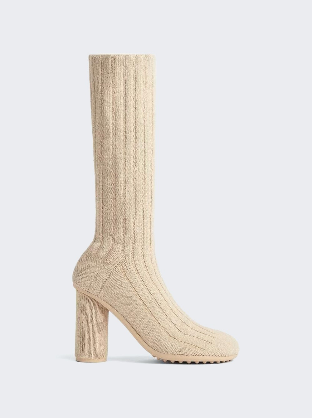 Details - Knitted wool sock boot - Material: silk, wool, recycled polyamide - Unlined - Lugged rubber outsole - Heel: 9cm | 3.5in - Listed in EU sizing, fits true to size Brand Style: 775456 V3V00 Designer/Brand: BOTTEGA VENETA
