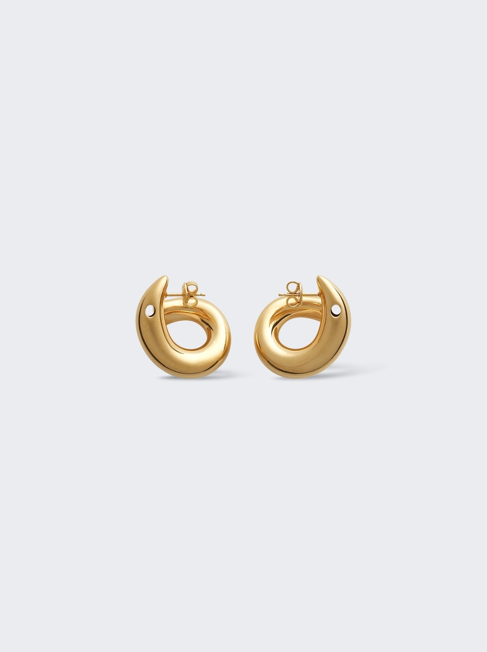 Details - Earrings with curved sardine shape - Crafted in 18k gold-finished sterling silver - Pin butterfly closure - Width: 9 mm | 0.4" - Thickness: from 7 to 9 mm | 0.3 to 0.4" - External diameter: 30 mm | 1.2" Brand Style: 795603 VAHU0 Designer/Brand: BOTTEGA VENETA