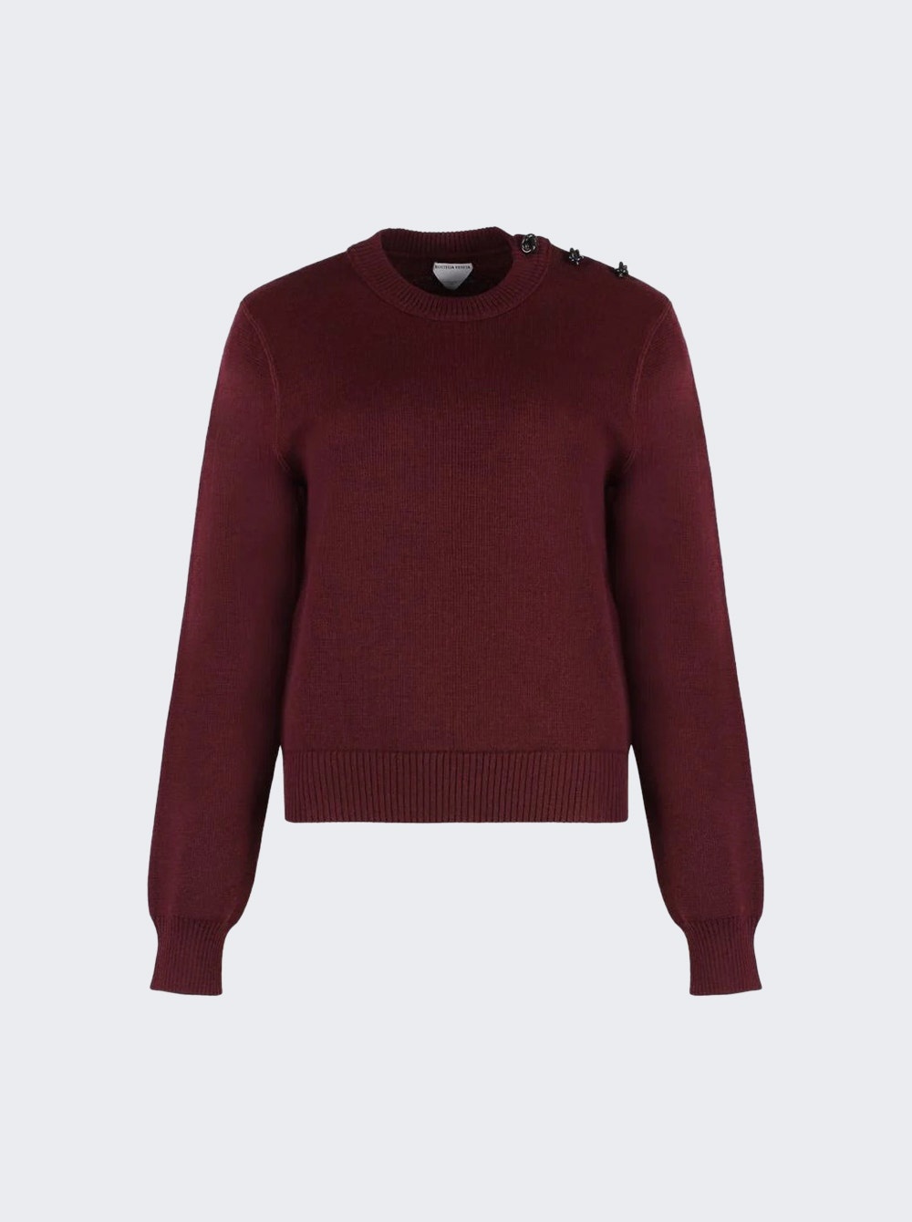 Wool Sweater With Metal Knot Buttons Dark Garnet