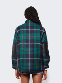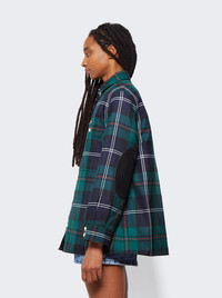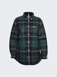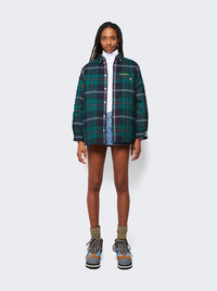 Embroidered Logo Check Wool Overshirt Dark Viridian Green