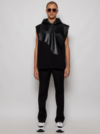 Monster Graphic Cotton And Lambskin Sleeveless Hoodie Black