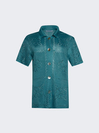 Details - Short sleeve shirt in an intricate pointelle stitch - Floral tile motifs inspired by heirloom crochet tablecloths - Classic pointed collar - Center front placket - Iridescent shell button closure - Relaxed fit - Material: 100% Viscose Size Information: Vendor Color Code: Brand Style: CDM-PS027 Designer/Brand: CALLE DEL MAR