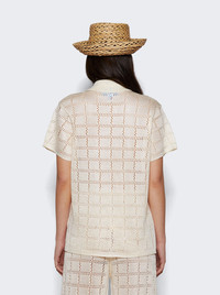 Details - Relaxed fit - Short sleeves - Open knit fabric - Button closure - Straight hem - Care according to label - Material: 100% viscose - Model is 5'9"/175cm and is wearing a size S Brand Style: CDM-PW212-NAT Designer/Brand: CALLE DEL MAR