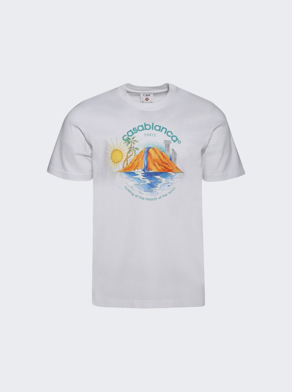 Details - Regular fit - Crewneck - Screen print design - Short sleeves - Straight hem - Care according to label - Material: 100% Cotton - Model is 6'1"/185cm and is wearing a size M Brand Style: MS25-JTS-001-18-EX-BEACH CLUB Designer/Brand: CASABLANCA