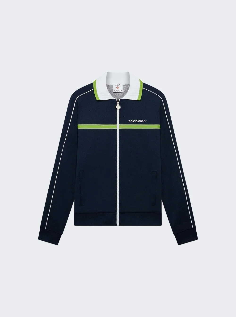 Details - Relaxed fit - Long sleeves - Rib collar - Stripe detail across the chest - Zip closure - Rib cuffs and hem - Mesh lining - Care according to label - Material: 51% Polyamide, 46% Viscose, 3% Elastane Vendor Color Code: Brand Style: M-SP26-JTP-391-01 Designer/Brand: CASABLANCA