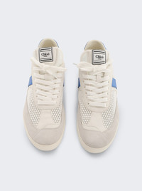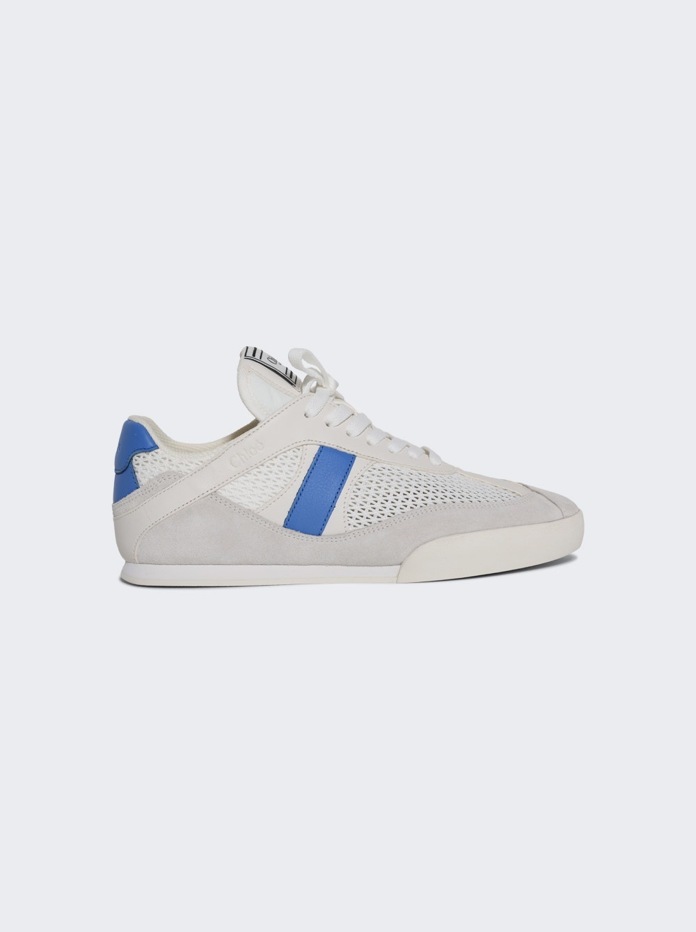 Details - Retro-style low-top sneakers - Recycled mesh and smooth and suede white calfskin leather - Slender silhouette - Internal wedge - Mesh and blue leather panels - Logo on heel - Listed in FR sizing, fits true to size Brand Style: CHC25S07IPL Designer/Brand: CHLOe