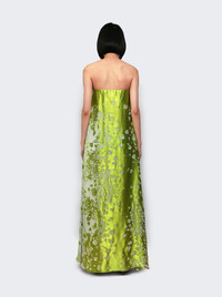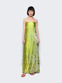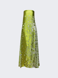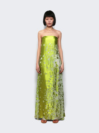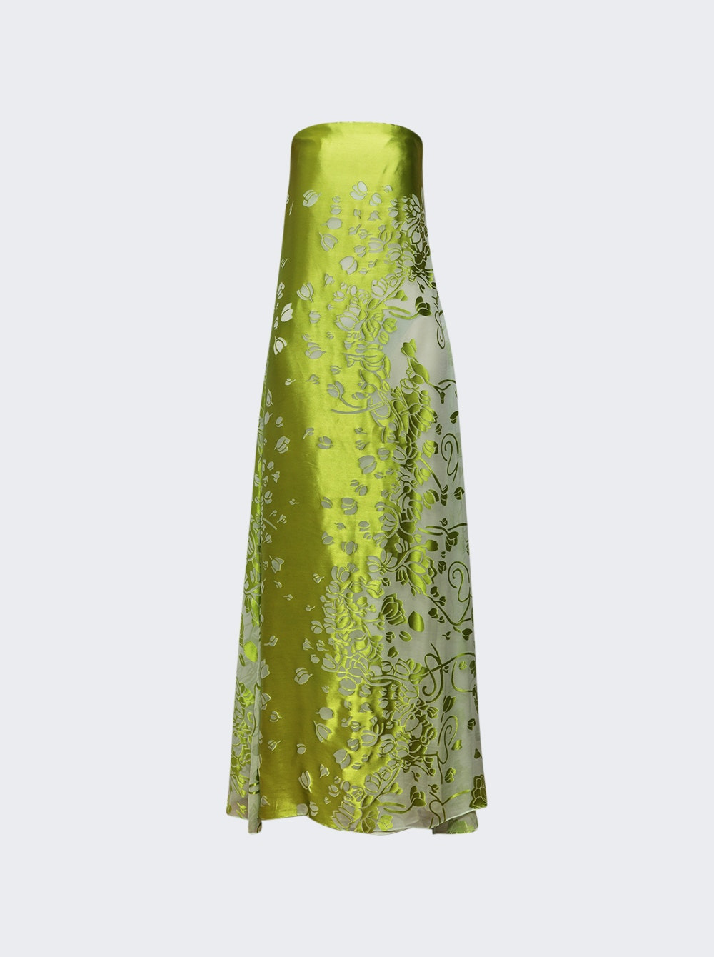 Details - Strapless - Maxi length - Bias cut gown - Botanical devore pattern throughout - Sheer and opaque interplay across body - Flared hemline - Pull on style - Care according to label - Material: 59% Viscose, 41% Silk Size Information: Vendor Color Code: Brand Style: 25023474 Designer/Brand: CHRISTOPHER ESBER