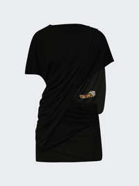 Encased Nature Resin Draped Jersey Dress Black